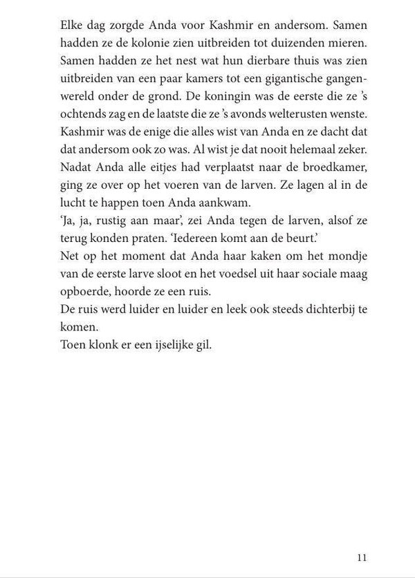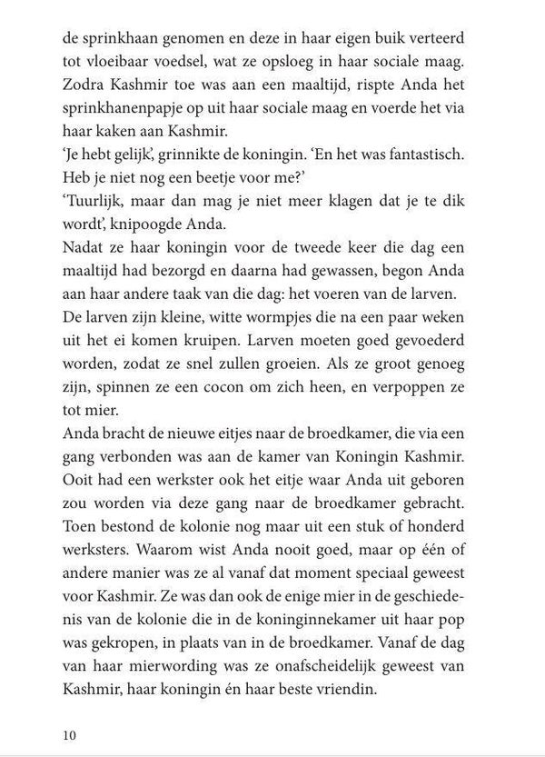Een avontuurlijk verhaal over vriendschap, (on)vrijheid en rafelige familiebanden. Een verhaal dat ontroert, grappig is en ook bol staat van de spanning. Bovenal ook een verhaal waarin de lezer allerlei boeiende feitjes leert over het leven van de mier.